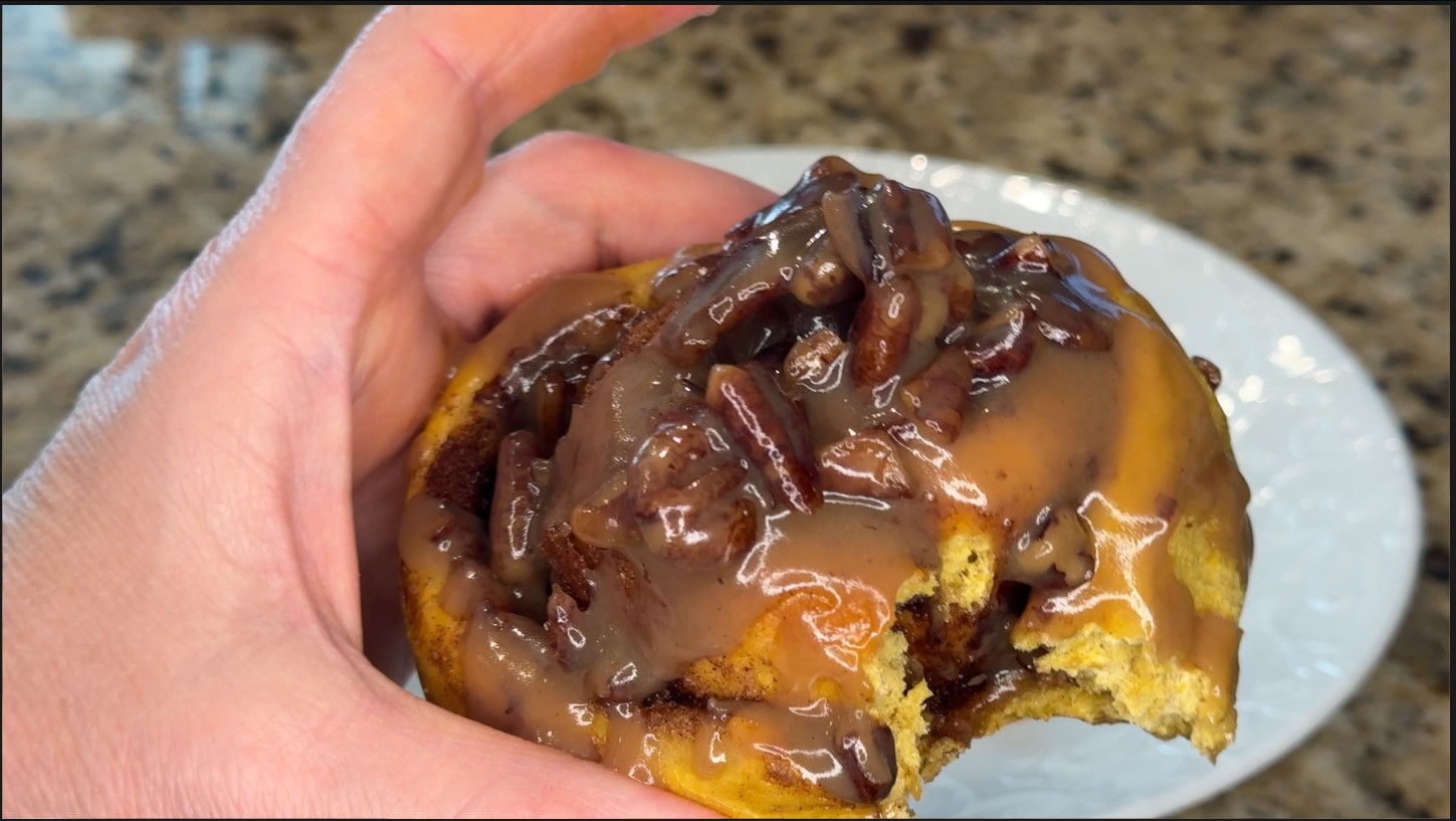 Pumpkin Spice Cinnamon Roll with maple pecan icing